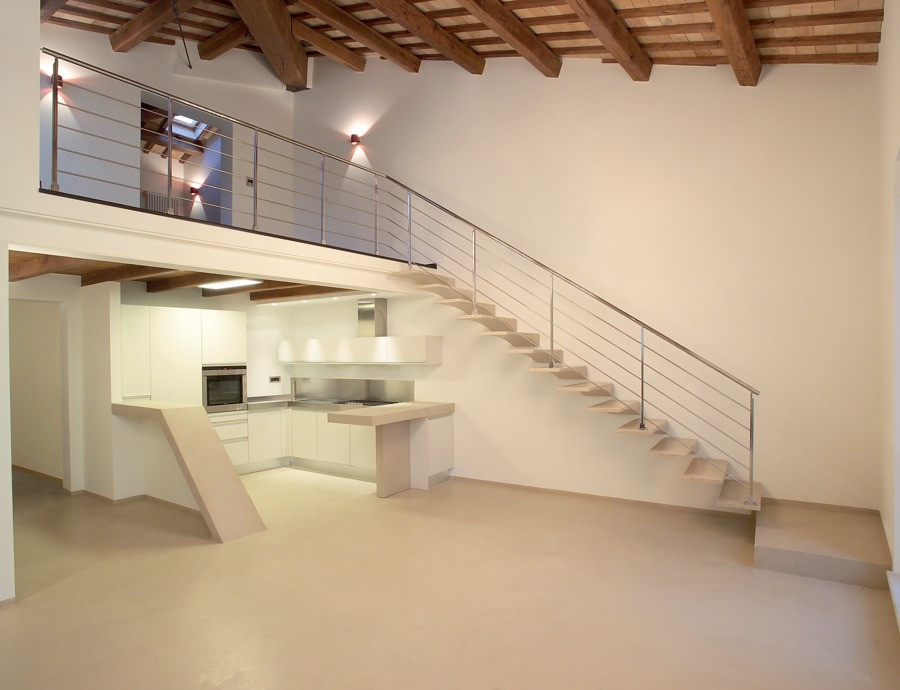 Escalier suspendu sans structure avec fixation dans mur porteur