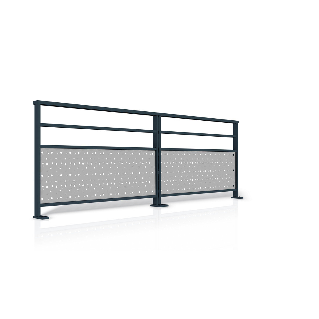 Avec sa pose simple et rapide, le garde-corps AMELITE est réalisé avec une main courante rectangulaire et une lisse intermédiaire.